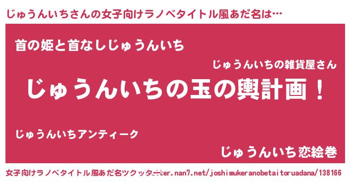 | 男性向けラノベタイトル風あだ名 | 『じゅうんいち~年齢イコール彼女いない歴の魔法使い~』 |