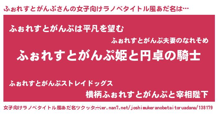 | 意味不明あだ名 | 『ペロリンふぉれすとがんぷ』 |