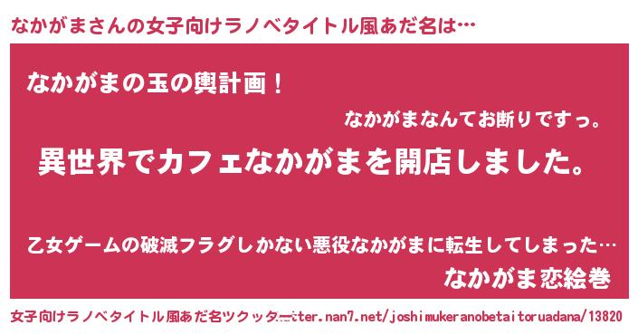 | 男性向けラノベタイトル風あだ名 | 『誰もが恐れるあのなかがまが、ぼくの専属メイドになるようです。』 |