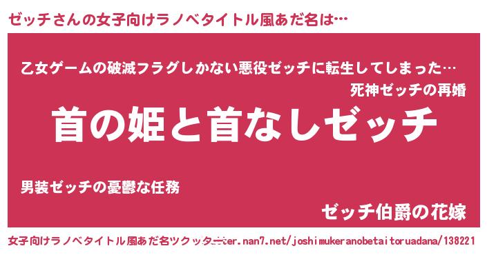 | ファンタジー風あだ名 | 『ヴァルゼッーナ』『エターナルゼッチー』 |