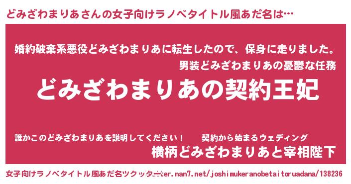 | 男性向けラノベタイトル風あだ名 | 『どみざわまりあという概念が存在しない退屈な世界 』 |