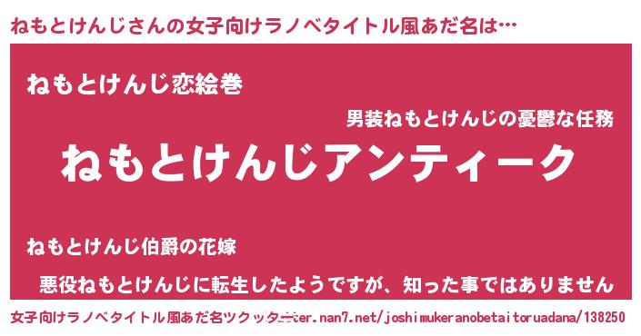 | ヘコむあだ名 | 『豆乳』『ねもとけんじ(笑)』 |