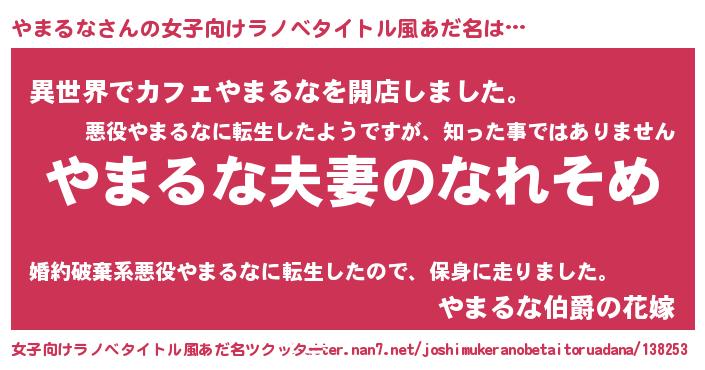 | ヒーロー風カッコイイあだ名 | 『正義の使者やまるな』『ネオヤマルナ』 |