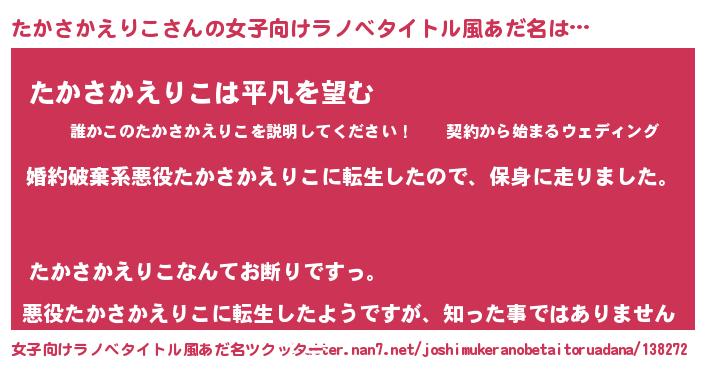 | 男性向けラノベタイトル風あだ名 | 『転生したらたかさかえりこだった件』 |
