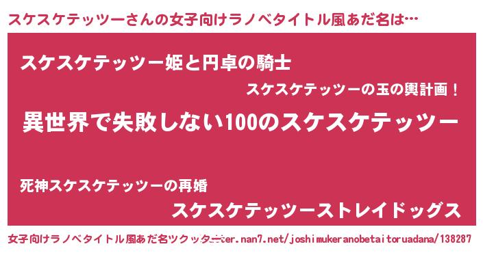 | 男性向けラノベタイトル風あだ名 | 『スケスケテッツーという概念が存在しない退屈な世界 』 |
