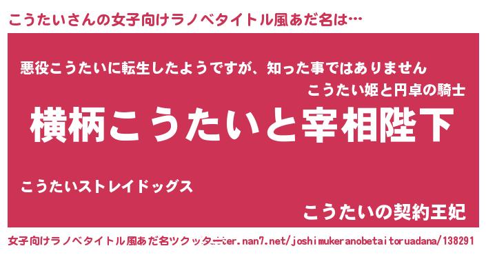 | ヒーロー風カッコイイあだ名 | 『仮面コウダー』『ネオコウタイ』 |