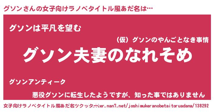 | 男性向けラノベタイトル風あだ名 | 『おまえをオタクにしてやるから、俺をグソンにしてくれ! 』 |