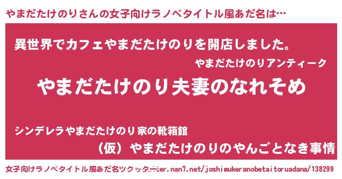 | 男性向けラノベタイトル風あだ名 | 『おまえをオタクにしてやるから、俺をやまだたけのりにしてくれ! 』 |