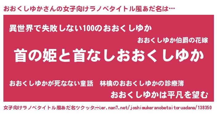 | 男性向けラノベタイトル風あだ名 | 『はたらくおおくしゆかさま!』 |