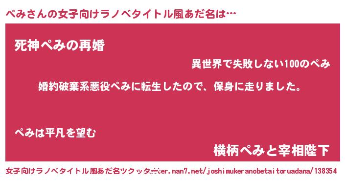 | 男性向けラノベタイトル風あだ名 | 『ペミスレイヤー』 |