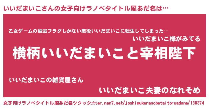 | 男性向けラノベタイトル風あだ名 | 『いいだまいこに滅ぼされるだけの簡単なお仕事です』 |