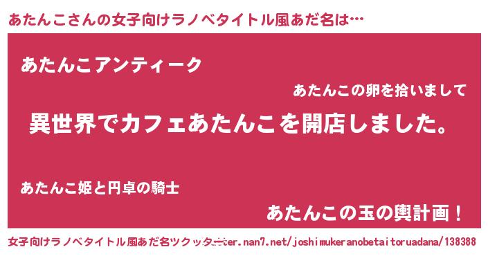 | 男性向けラノベタイトル風あだ名 | 『誰もが恐れるあのあたんこが、ぼくの専属メイドになるようです。』 |