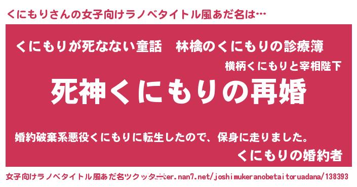 | 男性向けラノベタイトル風あだ名 | 『ノーゲーム・ノークニモリ』 |