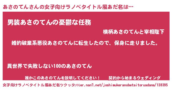 | 男性向けラノベタイトル風あだ名 | 『転生したらあさのてんだった件』 |