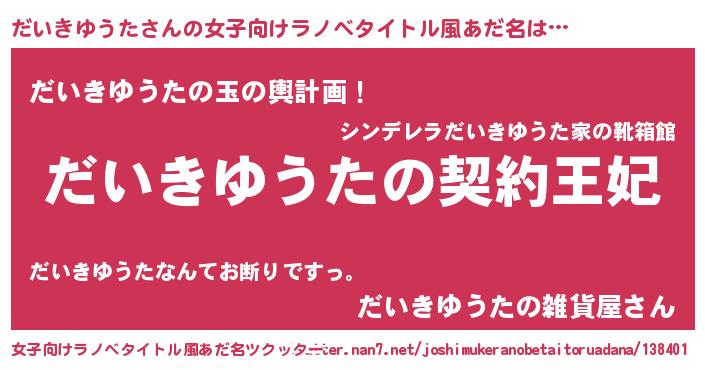 | 肩書あだ名 | 『だいきゆうた先生』『だいきゆうた少将』 |