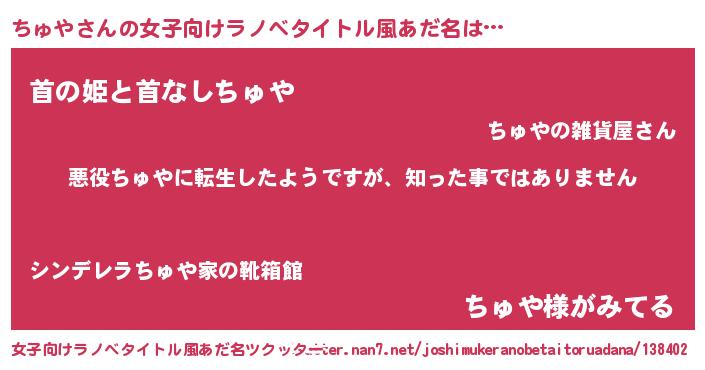 ちゅやさんの女子向けラノベタイトル風あだ名