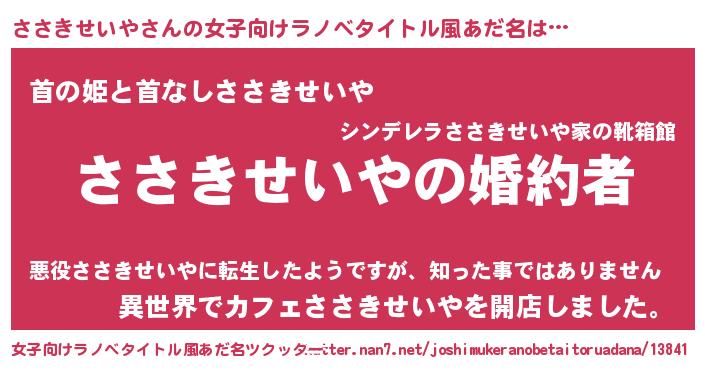 | 胡散臭い通販商品みたいなあだ名 | 『運命の人と巡り会える高級そうな壺…その名も「ささきせいや」』 |