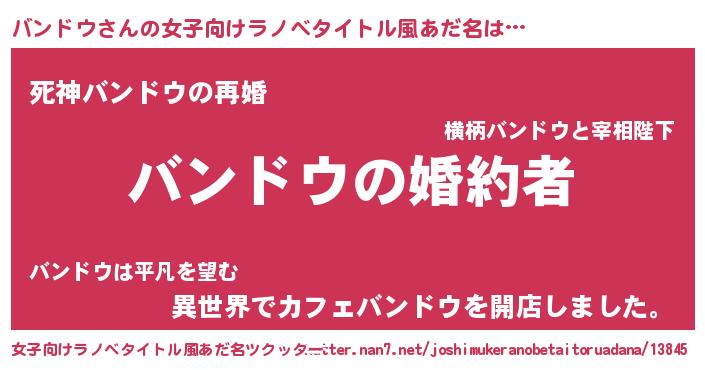 | 胡散臭い通販商品みたいなあだ名 | 『運命の人と巡り会える高級そうな壺…その名も「バンドウ」』 |
