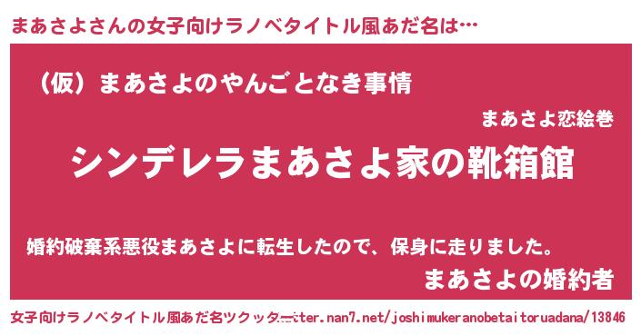 | 胡散臭い通販商品みたいなあだ名 | 『必ず成功する水晶球…その名も「まあさよ」』 |