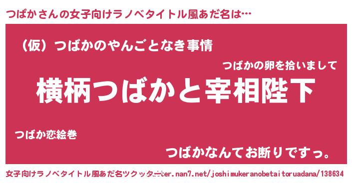 | 男性向けラノベタイトル風あだ名 | 『つばかに滅ぼされるだけの簡単なお仕事です』 |