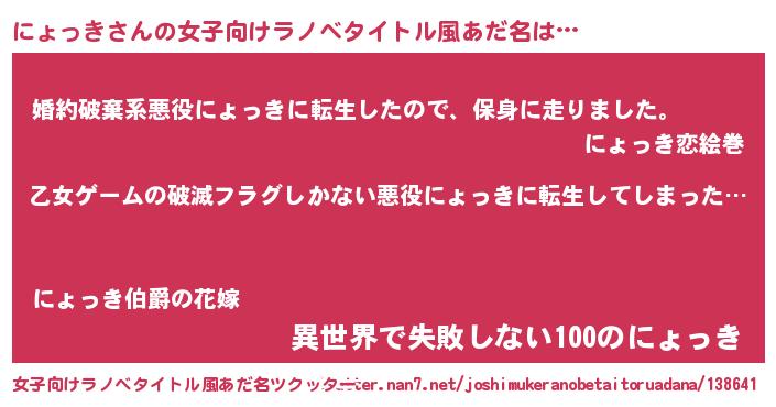 | 意味不明あだ名 | 『住所不定無職にょっき(74歳)』 |