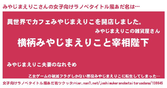 | 胡散臭い通販商品みたいなあだ名 | 『来世でも幸せになれる健康食品…その名も「みやじまえりこ」』 |