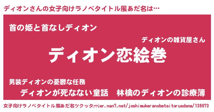 | 男性向けラノベタイトル風あだ名 | 『ノーゲーム・ノーディオン』 |