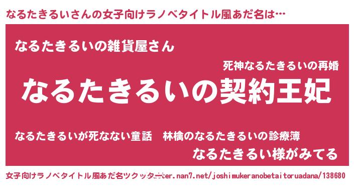 | 男性向けラノベタイトル風あだ名 | 『誰もが恐れるあのなるたきるいが、ぼくの専属メイドになるようです。』 |