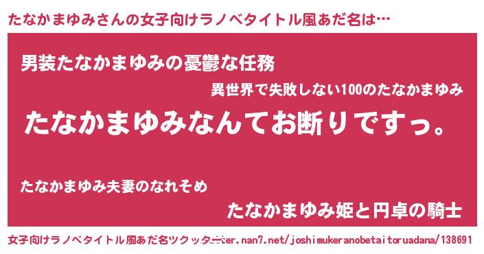 | 男性向けラノベタイトル風あだ名 | 『魔法科高校のたなかまゆみ』 |