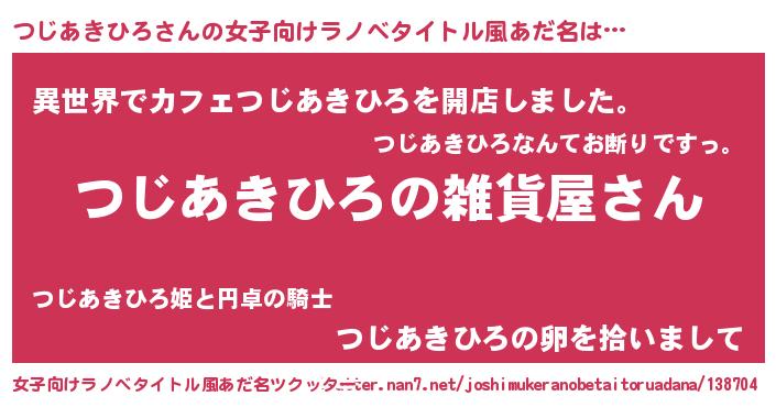 | 男性向けラノベタイトル風あだ名 | 『やはりつじあきひろの青春ラブコメはまちがっている 』 |
