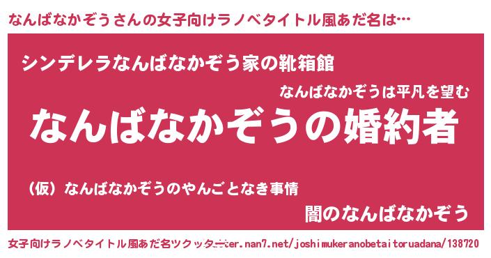 | ファンタジー風あだ名 | 『エターナルナンバナカゾウー』 |