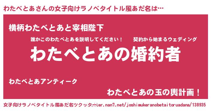 | 胡散臭い通販商品みたいなあだ名 | 『運命の人と巡り会える高級そうな壺…その名も「わたべとあ」』 |