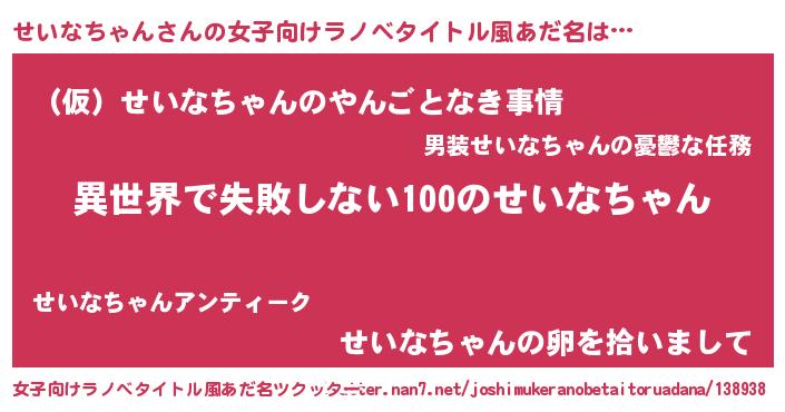 | 男性向けラノベタイトル風あだ名 | 『せいなちゃんという概念が存在しない退屈な世界 』 |