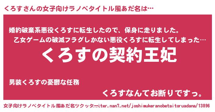 | 男性向けラノベタイトル風あだ名 | 『誰もが恐れるあのくろすが、ぼくの専属メイドになるようです。』 |