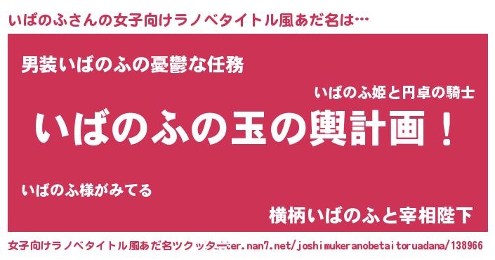 | 恥ずかしいあだ名 | 『プリティーいばのふ』『イバリンリン』 |