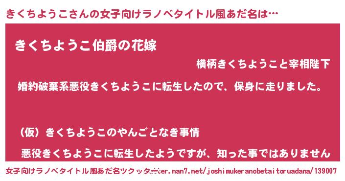 | 男性向けラノベタイトル風あだ名 | 『キクチヨウコスレイヤー』 |