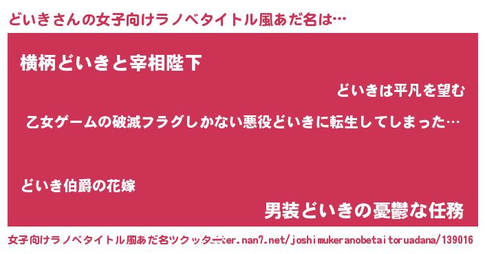 | 意味不明あだ名 | 『住所不定無職どいき(5歳)』 |