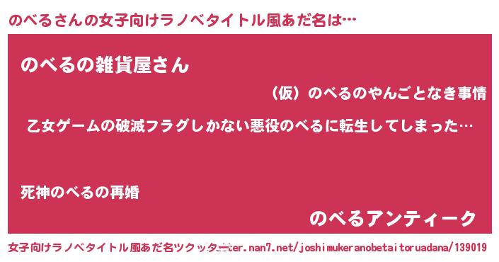 | ファンタジー風あだ名 | 『ヴァルノベーナ』『エターナルノベルー』 |