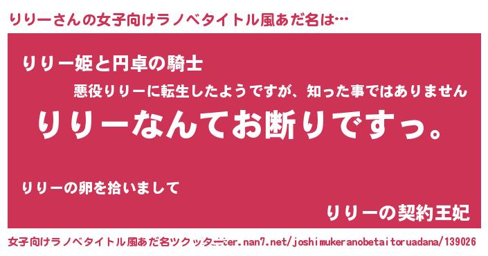 | 男性向けラノベタイトル風あだ名 | 『魔法科高校のりりー』『りりーの憂鬱』 |