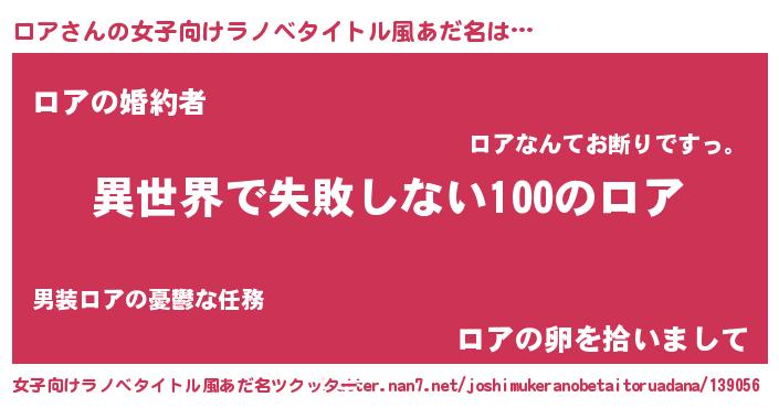 | 男性向けラノベタイトル風あだ名 | 『ロアという概念が存在しない退屈な世界 』 |