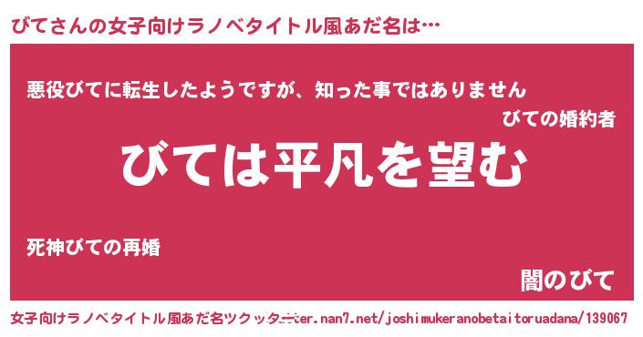 | 意味不明あだ名 | 『とにかく怪しいびて』『自称びて』 |