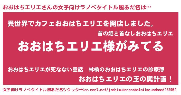 | 男性向けラノベタイトル風あだ名 | 『おおはちエリエの嫁は女の子じゃないと思った?』 |