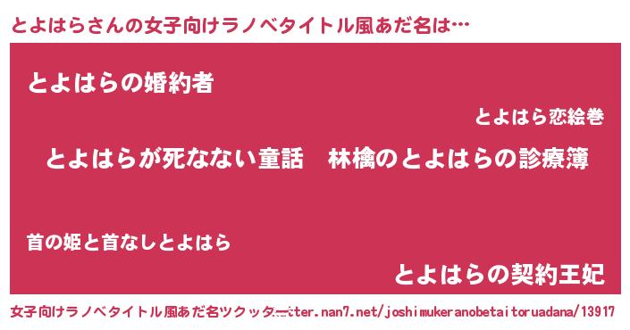 | ファンタジー風あだ名 | 『ヴァルトヨーナ』『トヨディッシュ』 |
