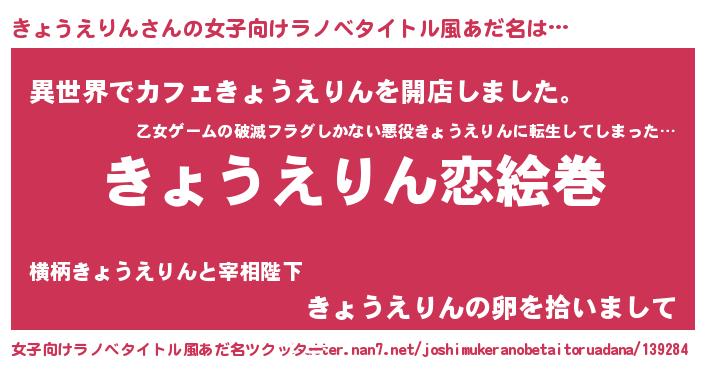 | ヒーロー風カッコイイあだ名 | 『愛の使者きょうえりん』『天弓騎士キョ』 |