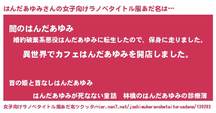 | 胡散臭い通販商品みたいなあだ名 | 『前代未聞の健康食品…その名も「はんだあゆみ」』 |