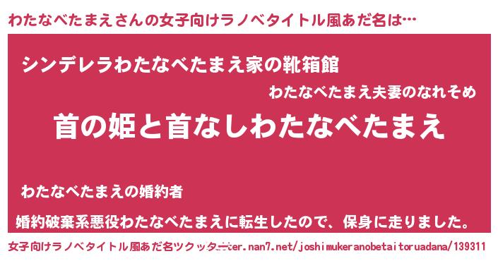 | 男性向けラノベタイトル風あだ名 | 『はたらくわたなべたまえさま!』 |