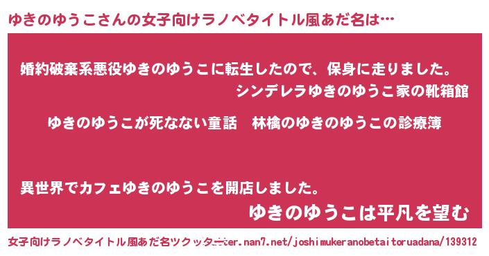 | 意味不明あだ名 | 『住所不定無職ゆきのゆうこ(89歳)』 |