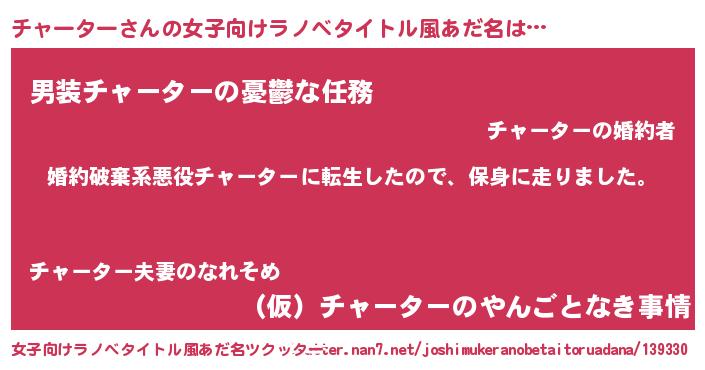 | 男性向けラノベタイトル風あだ名 | 『チャータースレイヤー』 |