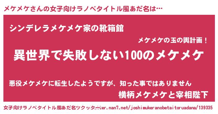 | 男性向けラノベタイトル風あだ名 | 『メケメケという概念が存在しない退屈な世界 』 |