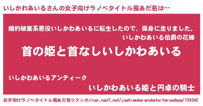 | 胡散臭い通販商品みたいなあだ名 | 『必ず成功するブレスレット…その名も「いしかわあいる」』 |